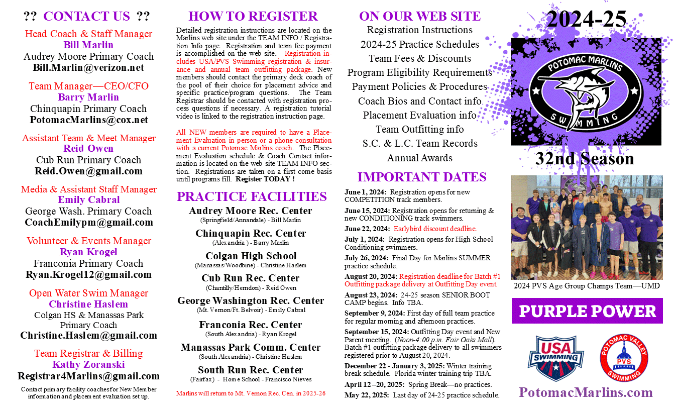 If you would like hard copies of the Marlins 2023-24 brochure please let us know by sending an email to the Team Manager with your mailing address and the number of brochures requested.